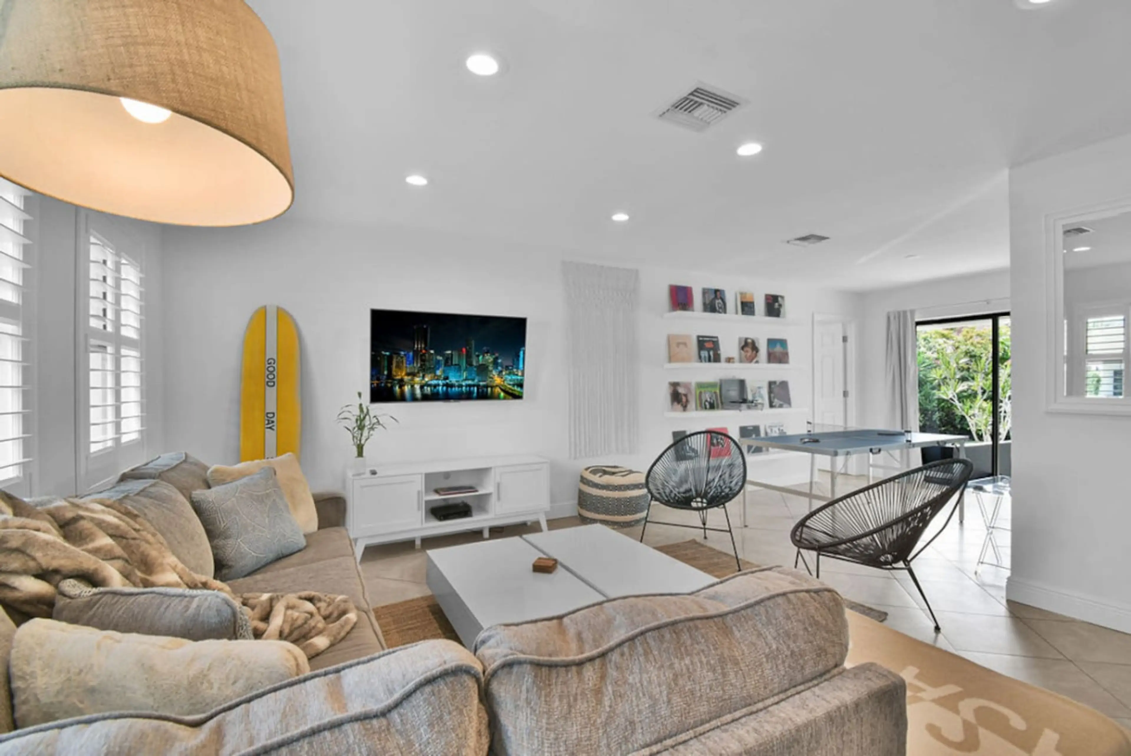 The Endless Summer Delray Beach Vacation Rental at 625 SE 3rd Ave is a designer-furnished cozy 3-bed/2-bath property. The amenities include a private pool with a large sunshelf for the little ones to swim safely, an en-suite primary bathroom, in-unit laundry, a grill, fully stocked kitchen and baths, and outdoor dining. Click here to book 625 SE 3rd Ave today.