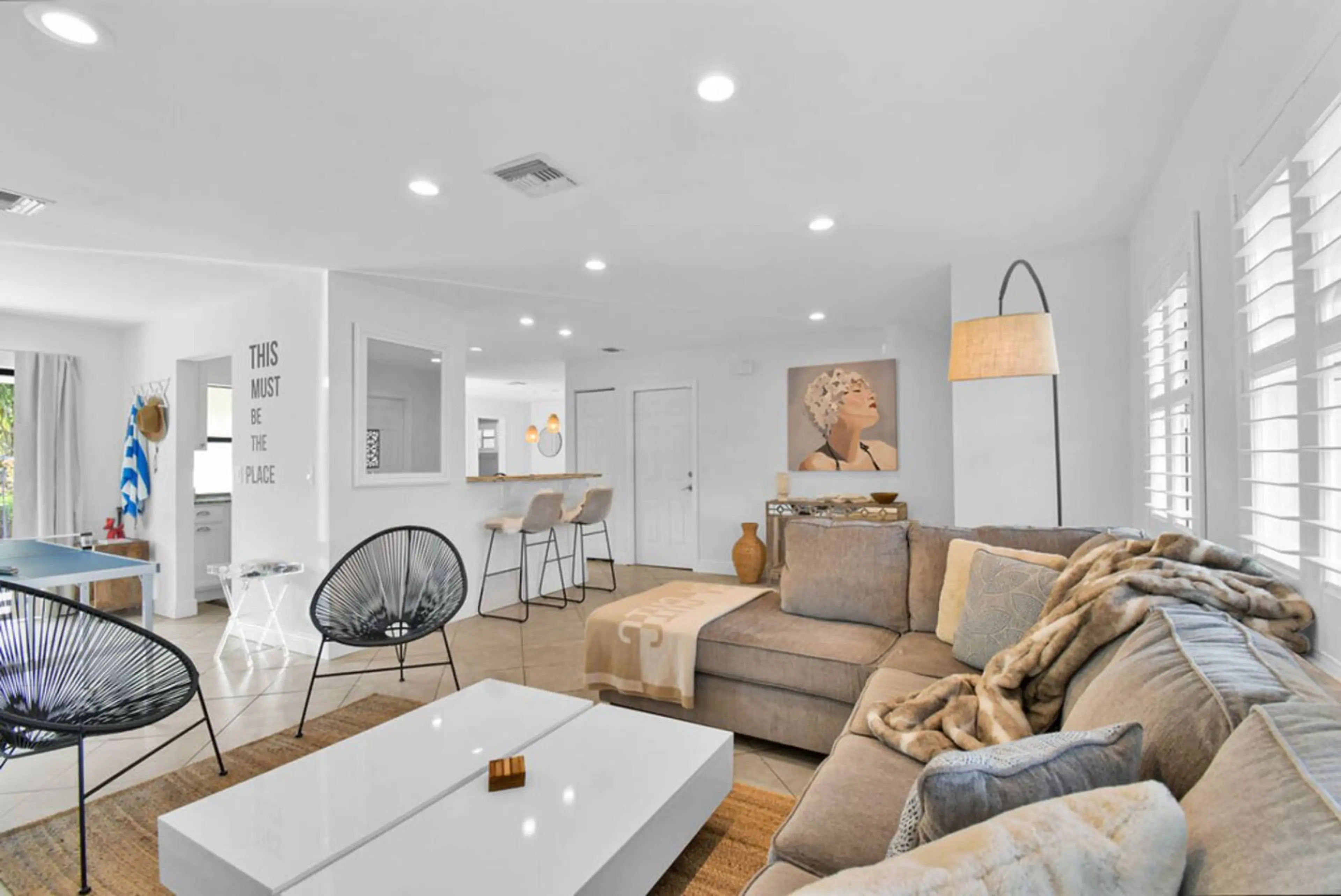This new Chic house is well suited for gathering families & friends. Located central to Delray's Atlantic Ave, art galleries, gyms, .5 miles to shopping, 2.5 miles to the beach, nestled in a serene neighborhood. A short distance to everything Delray Beach has to offer. Bed 1: King Bed; Bed2: 2 T...